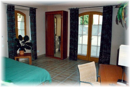 Im Erdgeschoss befinden sich zwei Ferienappartements, je ca. 55m2, gedacht für bis zu 5 Personen. Beide Appartements haben ihre eigene Terrasse. In einem dieser Appartements haben wir die in Frankreich geltenden Kriterien für Behinderte berücksichtigt (bitte bei Reservierung unbedingt anfragen). Die Wohn- und Schlafbereiche sind durch Zwischenwände und Nischen sinnvoll, aber dennoch gemütlich und optisch ansprechend, getrennt. |